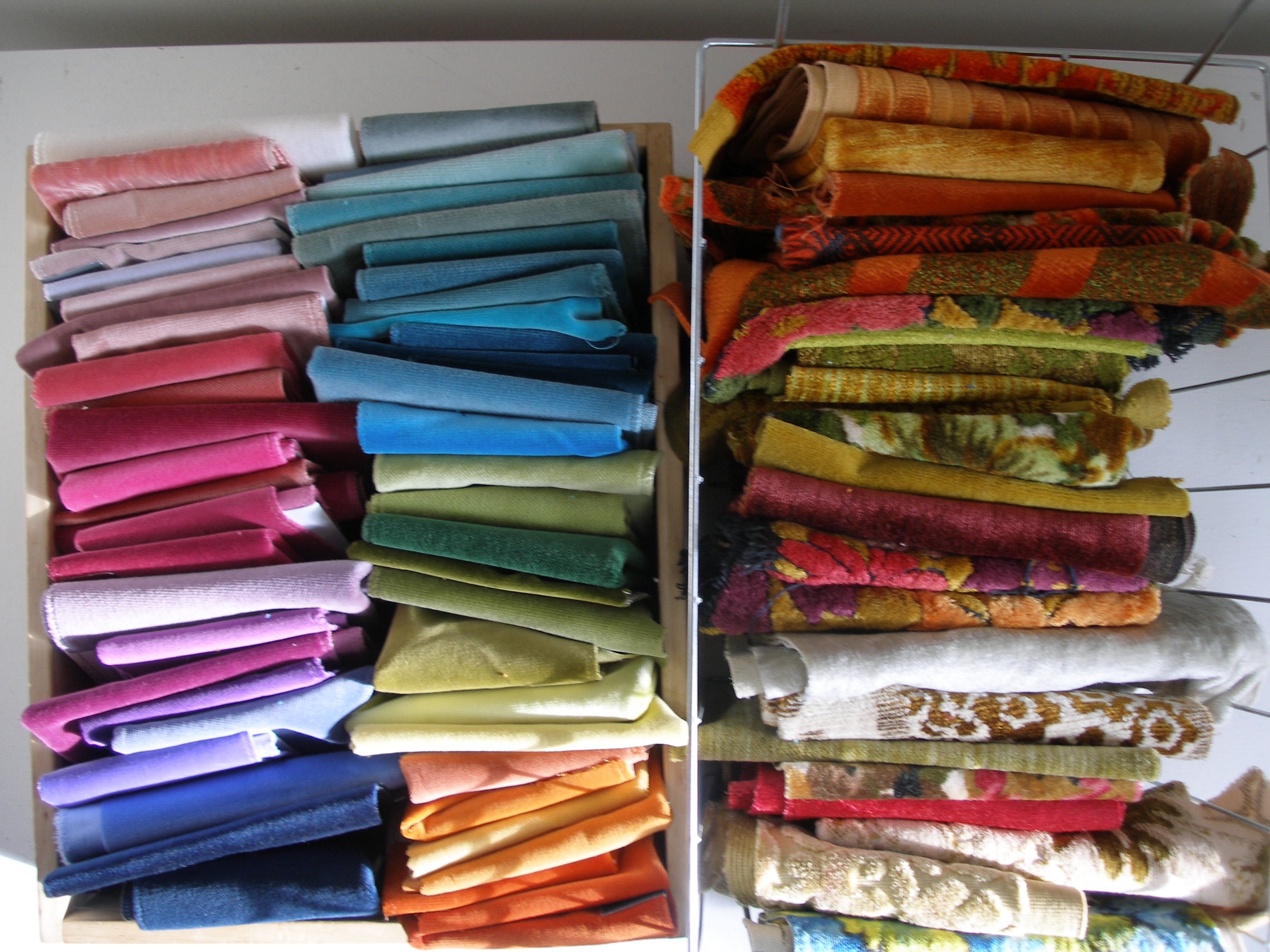 I’m going to revisit my vintage velvet collection in an upcoming post (stack to the right above is the vintage velvet). Many have sold out, but there are still some lovely ones available for purchase, being made up this week.