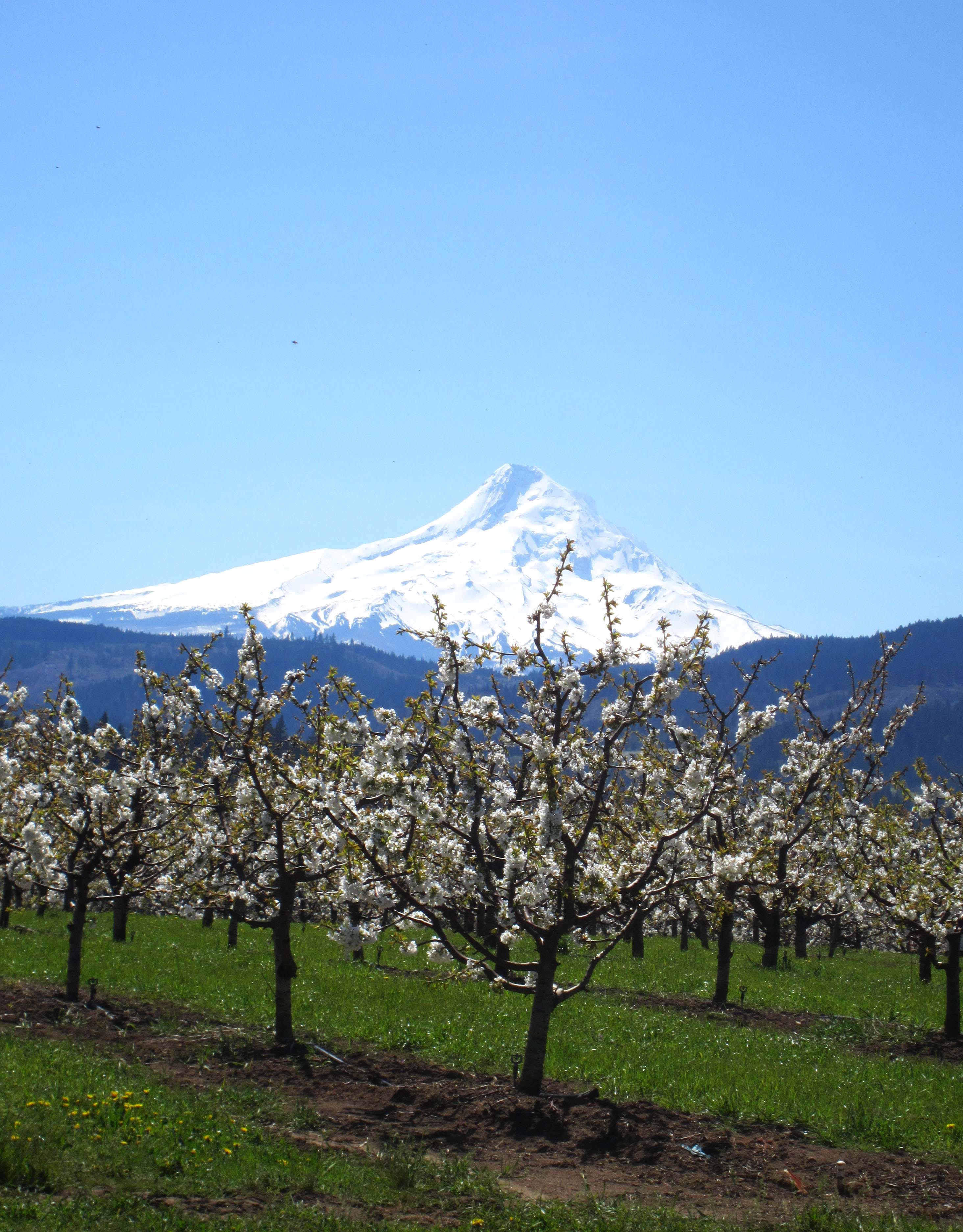 Hood River, a hot spot for wind surfers, is a charming little town full of historic, quaint neighborhoods with stunning views of Mt. Hood and Mt. Adams. And then there’s the dramatic gorge winding through the town; its vast and large scale with richly textured cliffs. As you arrive, you can feel the upbeat, laid back vibe where the pace is slower and the view, like a cool glass of water. The air is fresh with Spring scents.