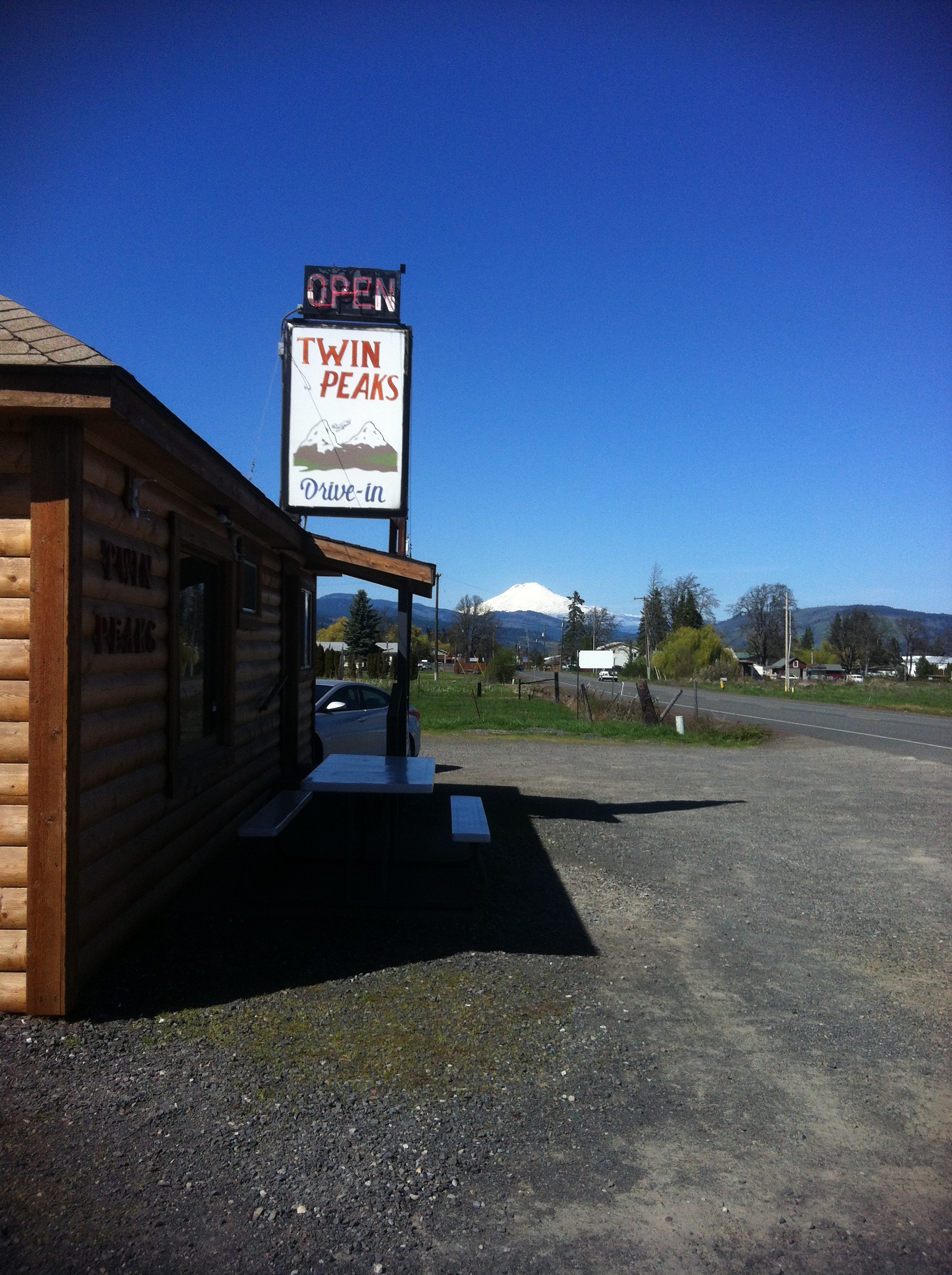 This is the view of Mt. Adams in one direction and Mt. Hood in the opposite, as you approach: