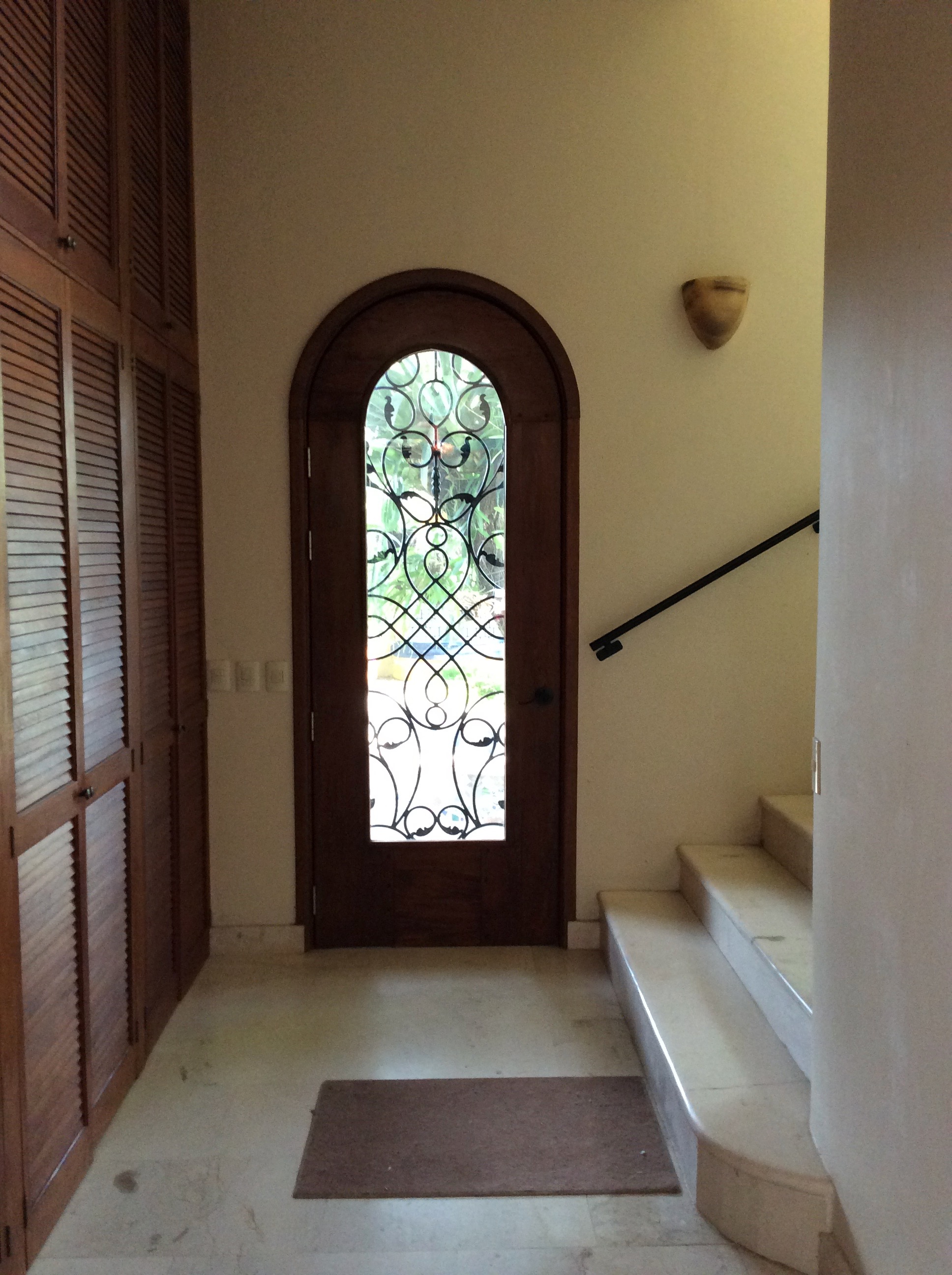 The front door, originally intended for the Mayan Palace Hotel were made the wrong size, so she bought them for the house.
