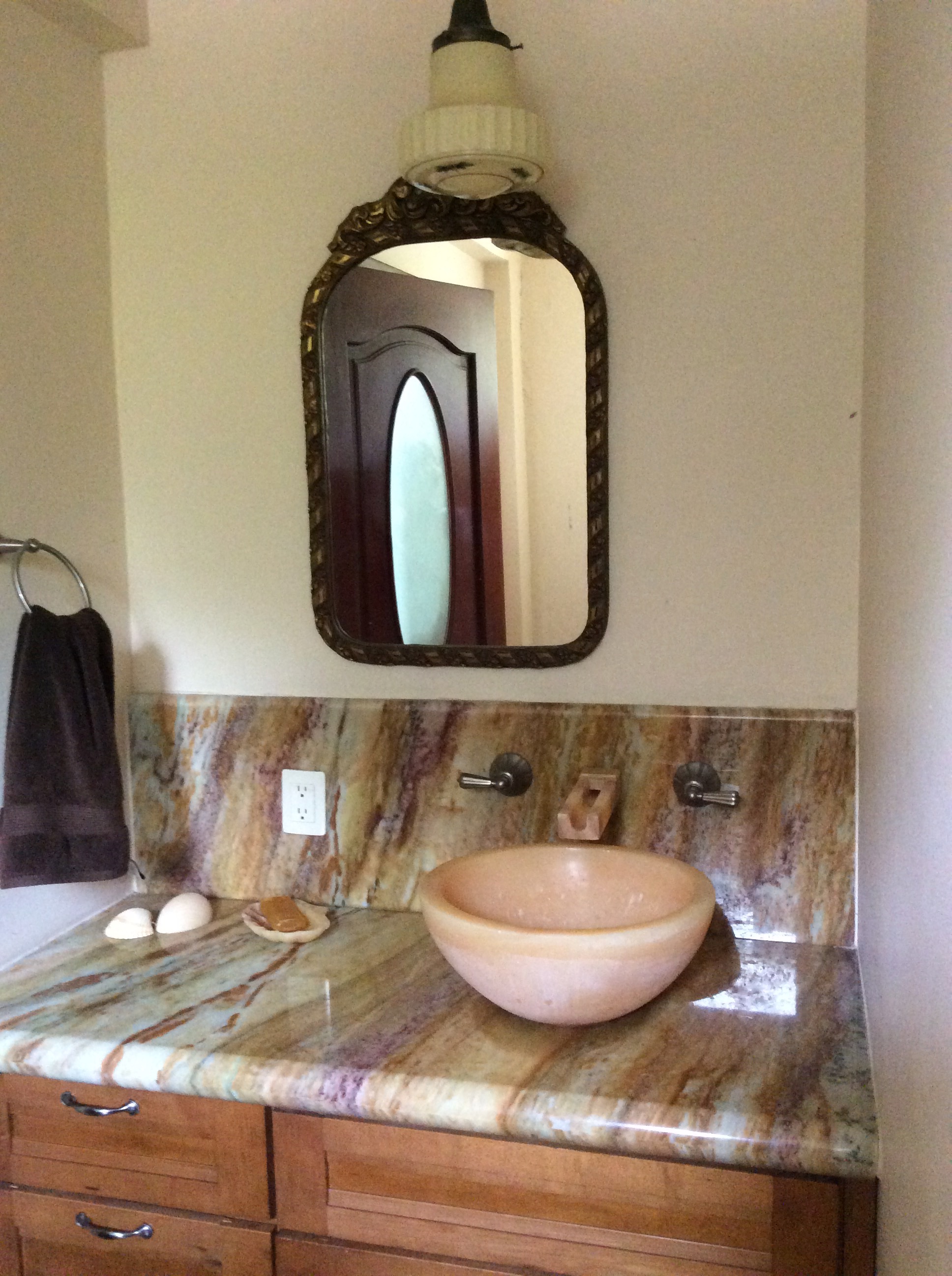 The marble used in the bathrooms and niches is also from Home Depot; made in MN, shipped to Texas and apparently was a paperwork nightmare.