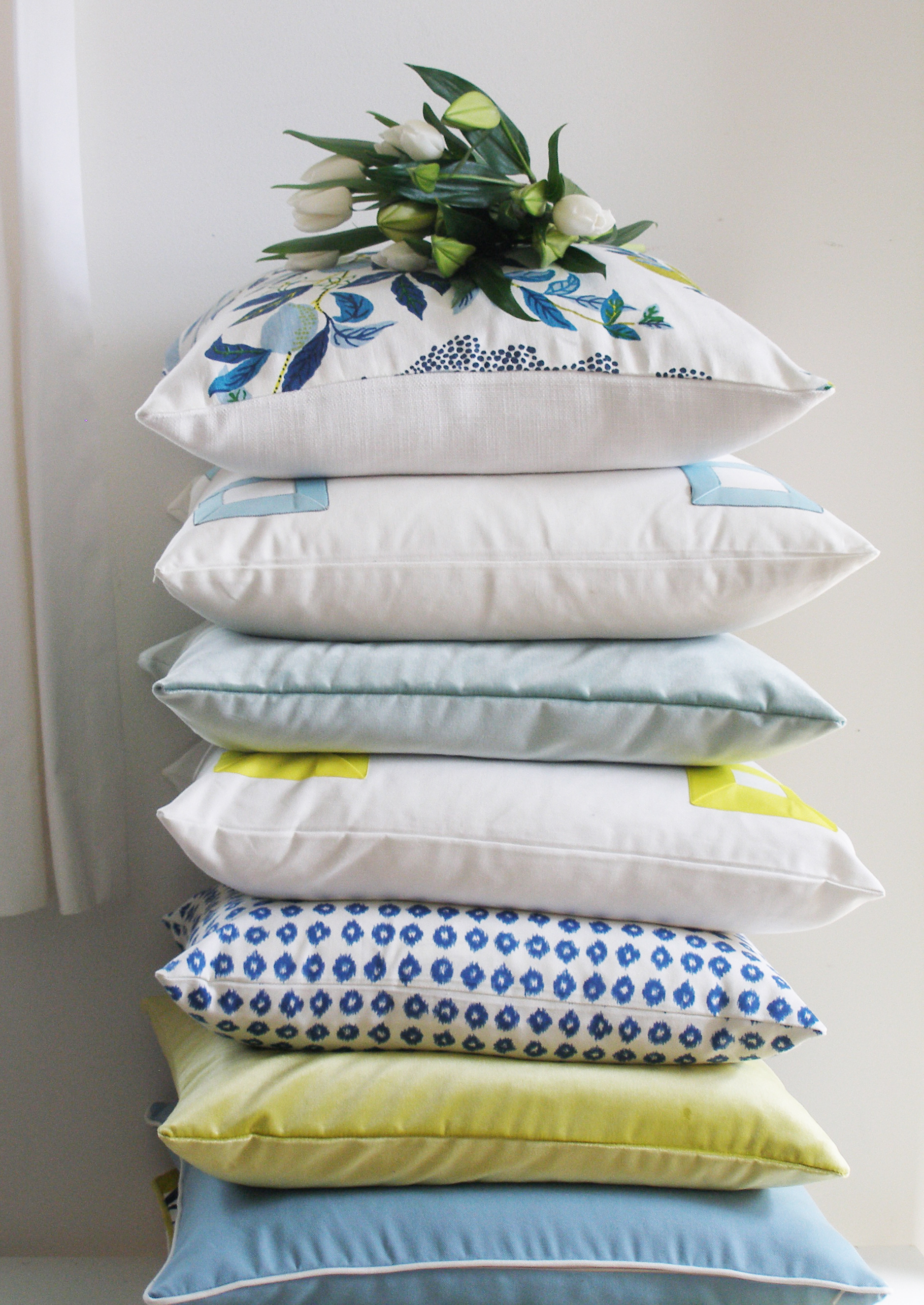 And here are some pillows from THE PAGODA COLLECTION that we curated together a year or so ago, beautifully displayed at her home in New York, that still look as fresh as ever: