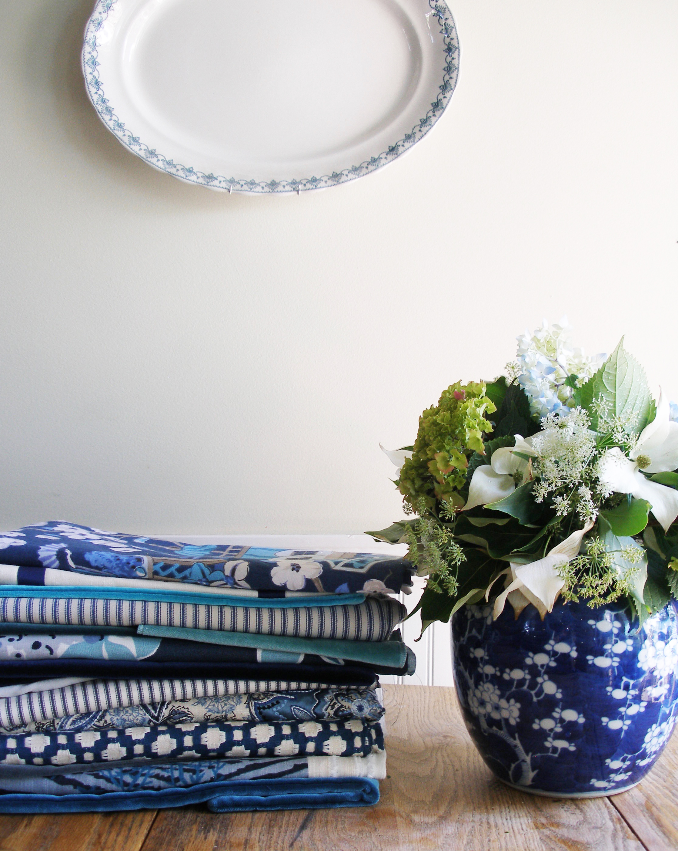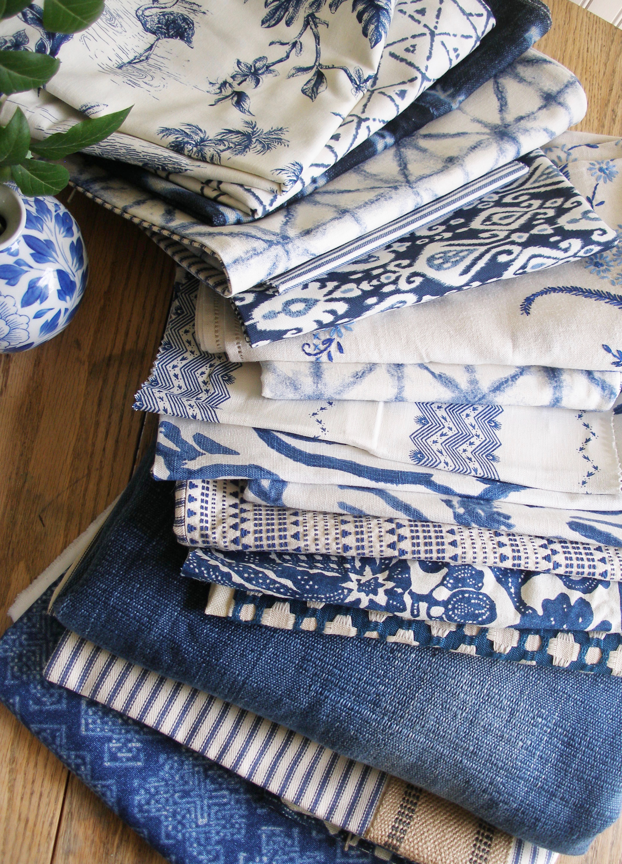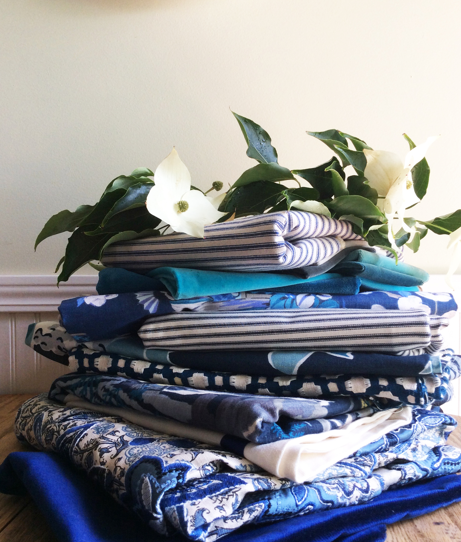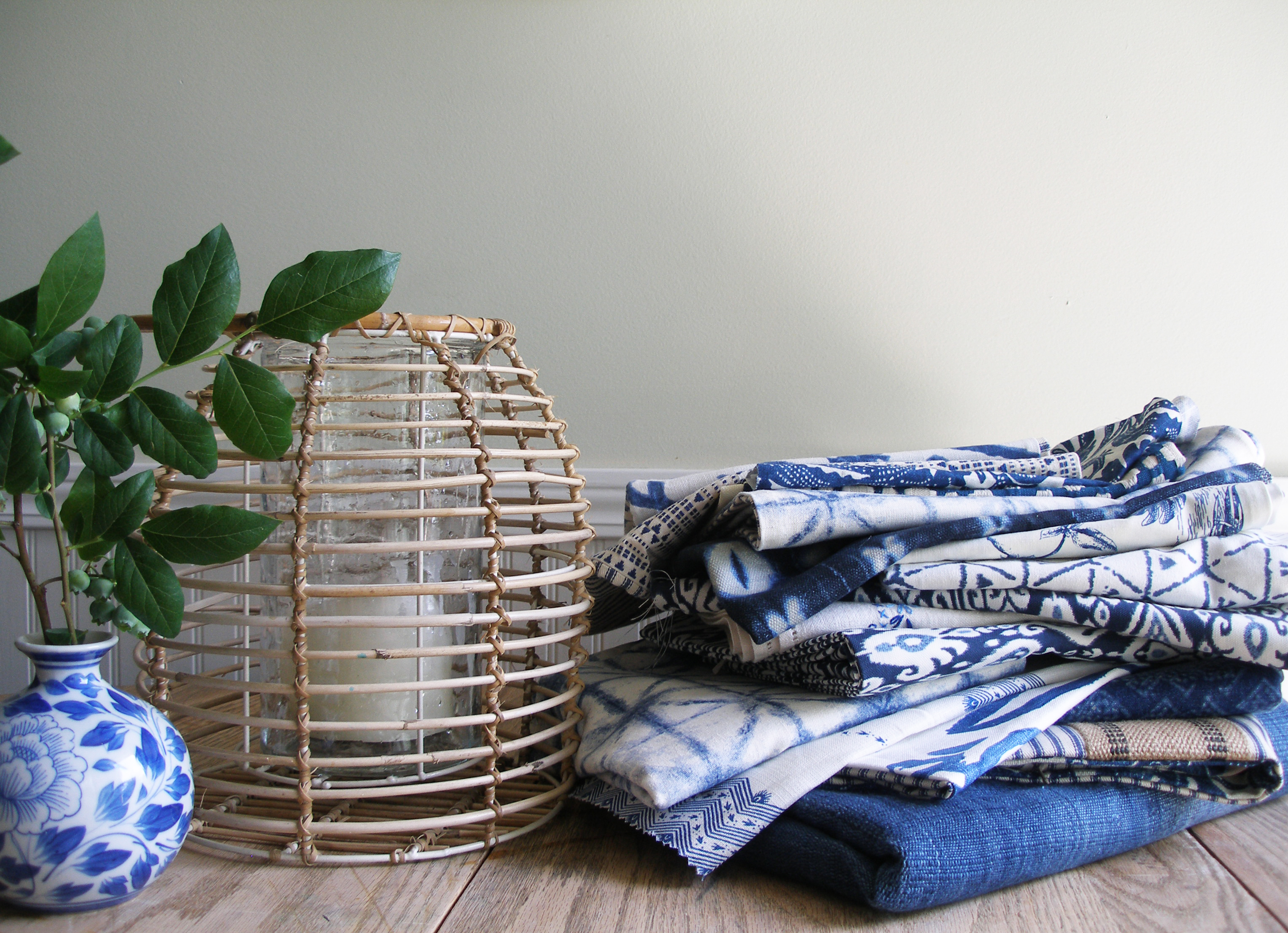 I’ve been sorting through A COLOSSAL PILE of textiles for the last couple weeks: specifically, BLUE & WHITES. I’ve never really organized it beyond a few curated collections over the years so I’m creating piles that work together stylistically and color wise. I’ve broken it down into a few different groups but obviously you can mix and match however you so desire. It is my intention to discount many of the ready to ship items on my ETSY store over the next couple weeks and refine and enhance the existing collections, with some great new additions.