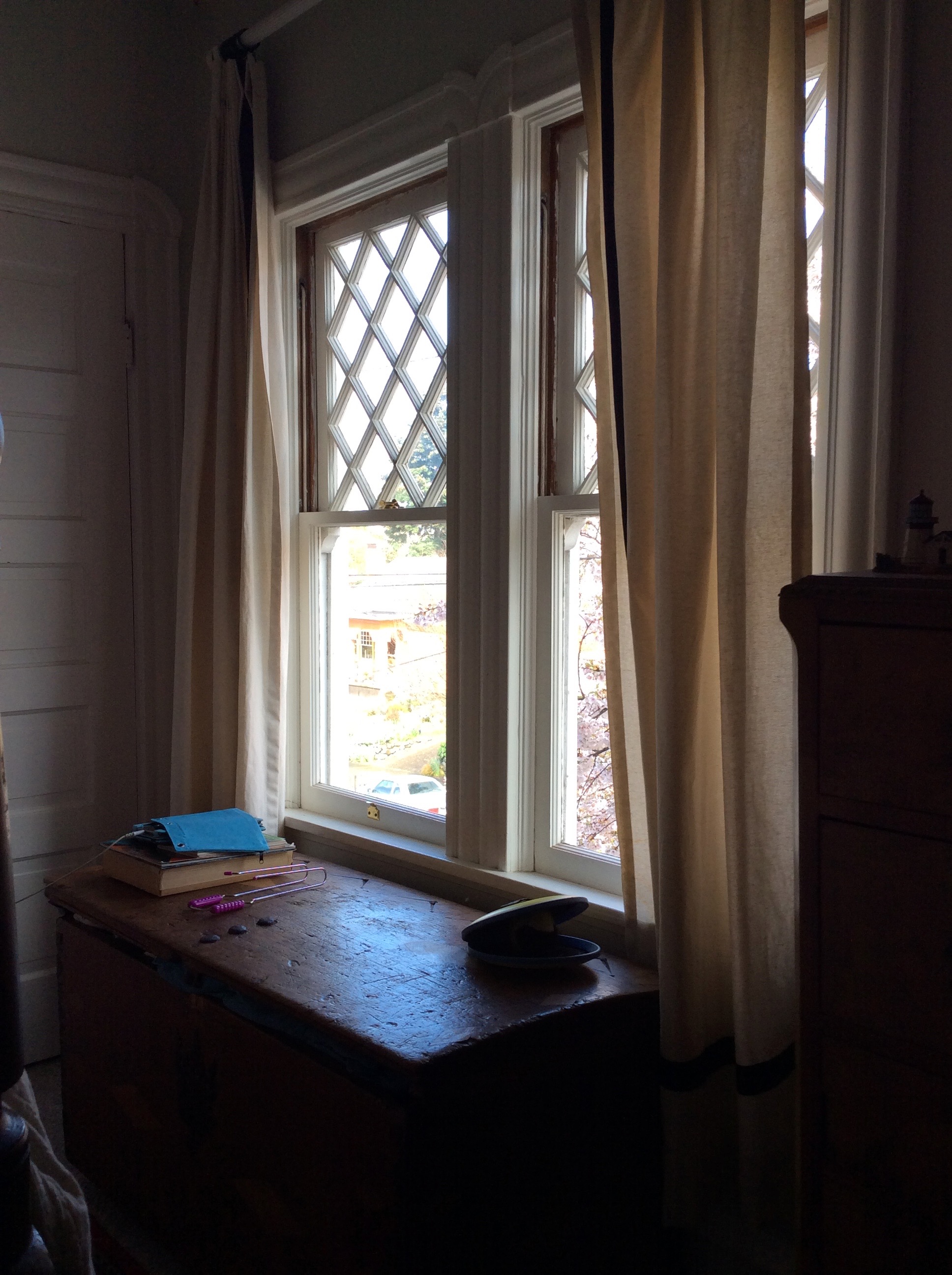I’m not sure what we are going to do with the windows yet. The drapery rings stick and are not super functional.