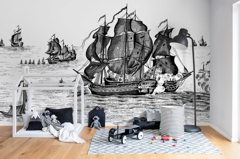 We are toying with the idea of a mural-size wallpaper on one long slanted wall in his bedroom. Who doesn’t like a good ship/boat theme. We were drawn to this gorgeous design by REBEL WALLS. Arthur has long been a fan of pirates and boats. He’s not sure he likes the black and white so we may have to negotiate the color. It also comes in gray and blue.