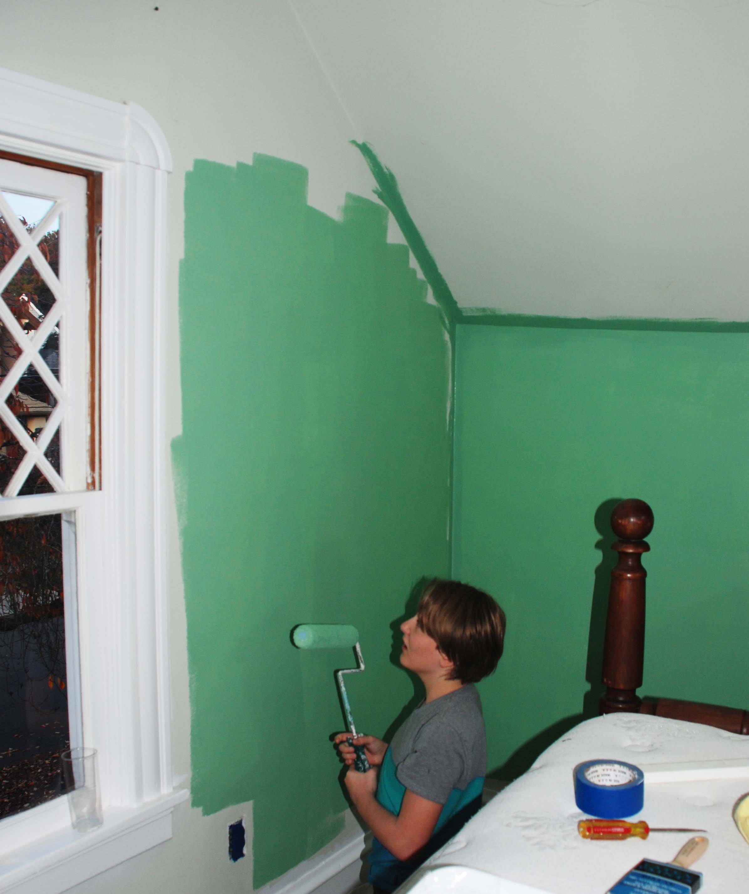 Arthur was able to help out with the roller portion of the painting.