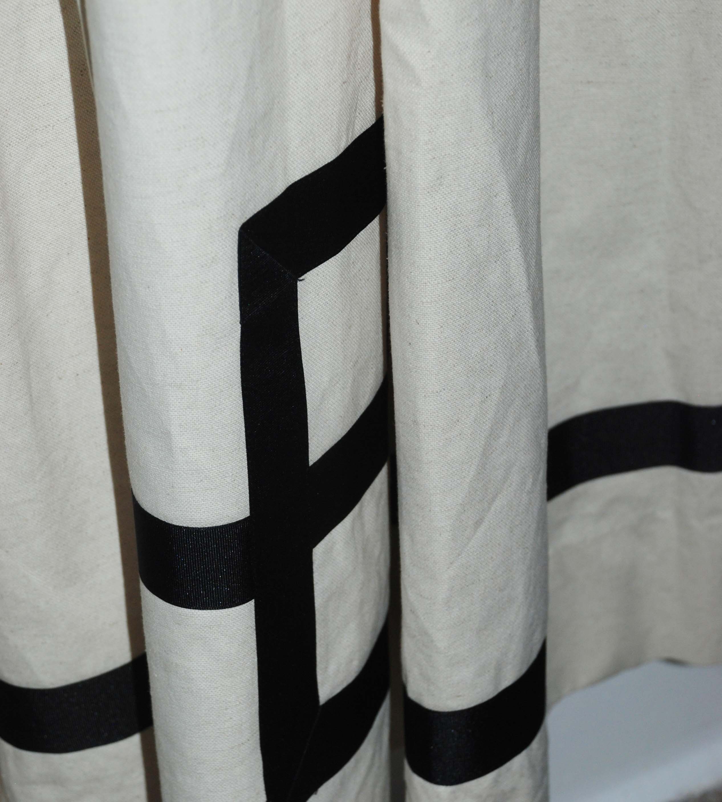 Here is a detail shot of the curtains. They have the ribbon work which STUDIO TULLIA is so known for. They used to be in my dining room but were in really good condition so I held onto them. Glad I could reuse them for this room. I ended up using four pleated panels which works really nicely for this double window. (They need to be pressed!)