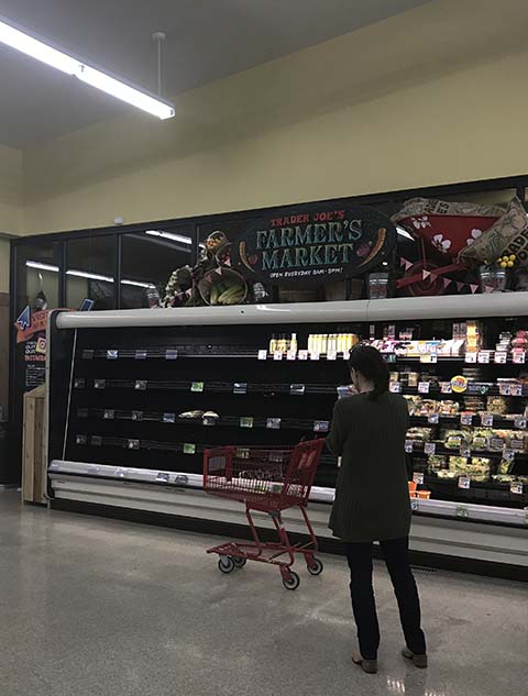 People started stockpiling groceries and hoarding all paper and sanitizing products. I went to Trader Joe’s around that time and there was literally NOTHING left on the shelves. I was in shock. Like I couldn’t remember my pin number, shock. And all I could find was a couple of sad red peppers and a bin of cookies. Soon after, people started cooking comfort food and baking like crazy; and next thing, there’s no flour or baking supplies to be found. WHAAAAT?