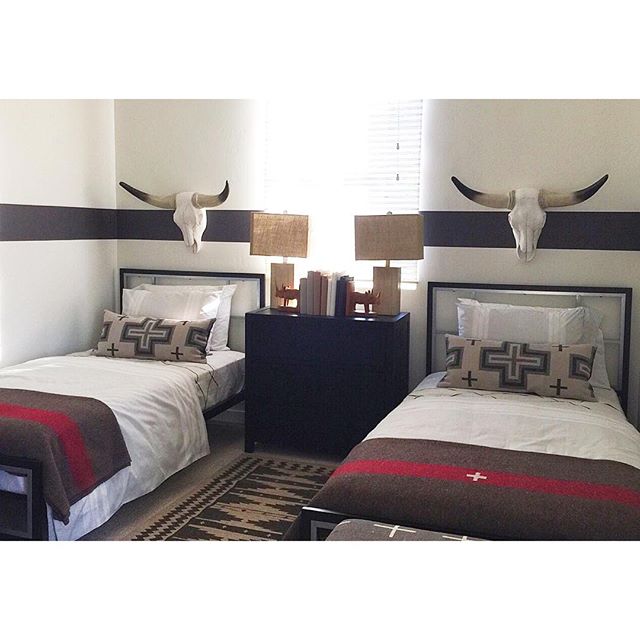 Here are two other pillows from STUDIO TULLIA using the Pendleton’s San Miguel cross fabric, featured in a wonderful room designed by Leyla Bowden Jaworski @designshopinteriors
