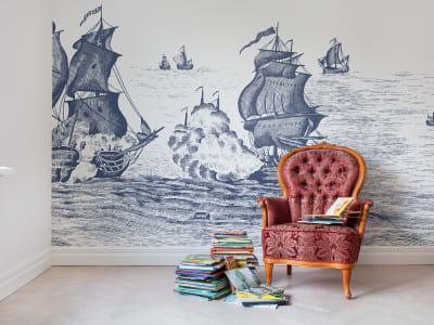 ACCENT MURAL WALL DEPICTING OLD SHIPS AT SEA