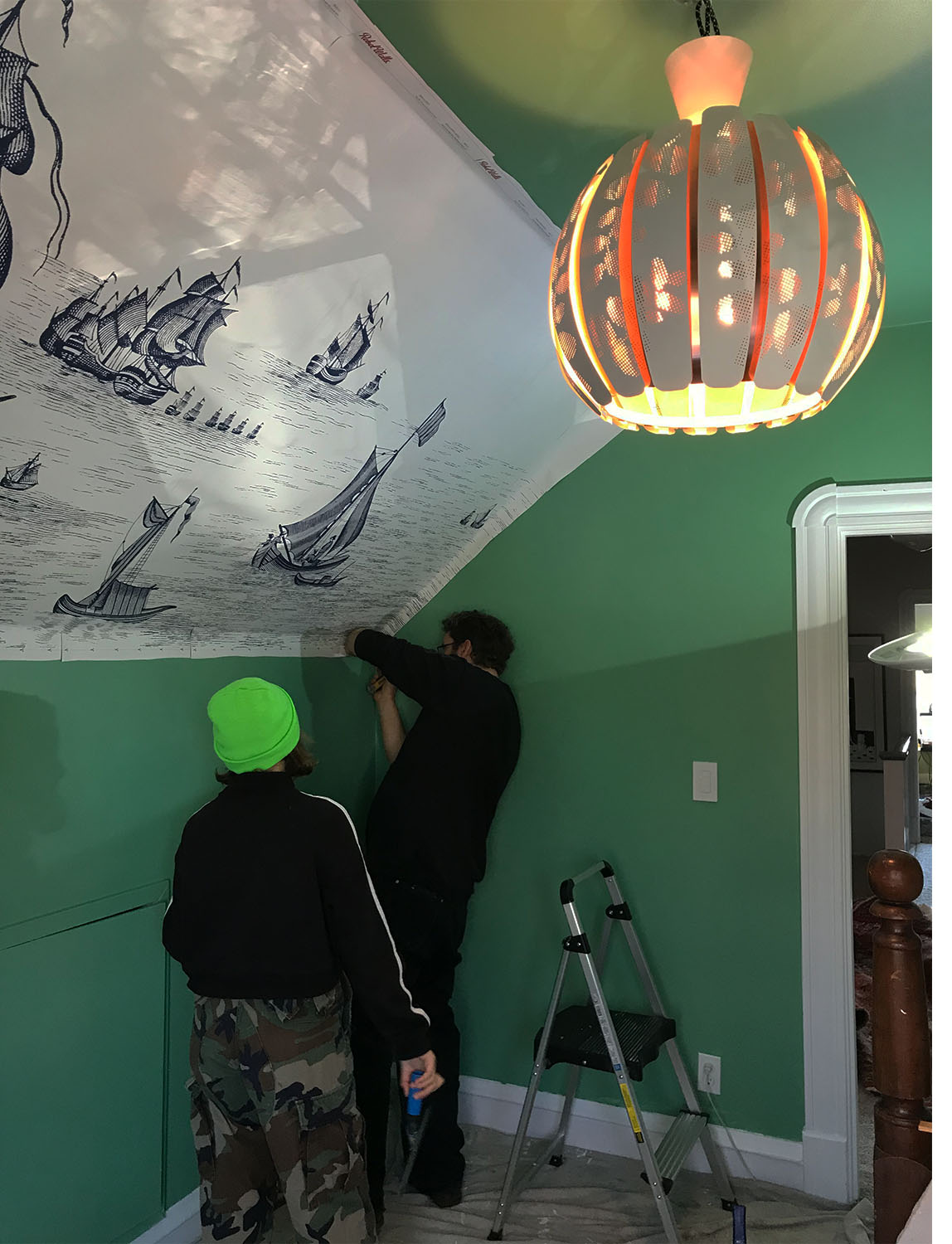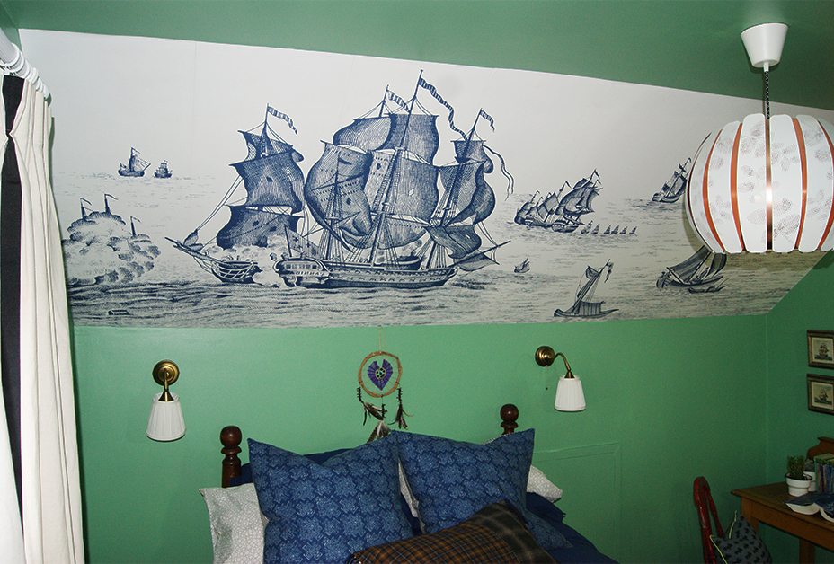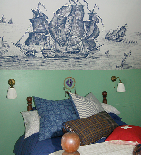 Once we’d identified the HIGH SEAS wallpaper and the old ROPE BED, it felt natural to go in the direction of an old captain’s quarters on a ship.