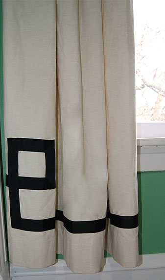 Here is a detail shot of the curtains. They have the ribbon work which STUDIO TULLIA is so known for. They used to be in my dining room but were in really good condition so I held onto them. Glad I could reuse them for this room. I ended up using four pleated panels which works really nicely for this double window.