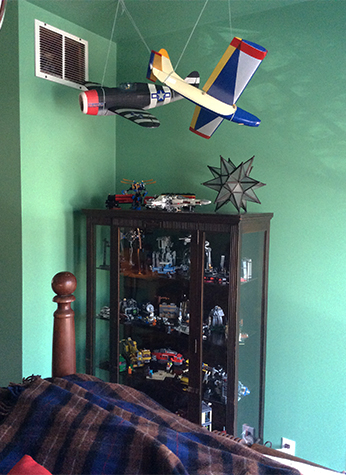 The VINTAGE MODEL AIRPLANES are from a dear neighbor and I thought I’d try hanging them up in his room. They are pretty delicate so I am hoping they hold up.