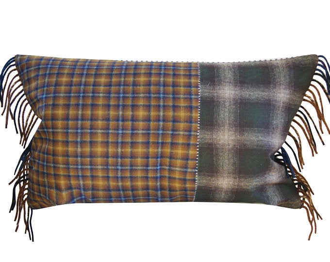 The duvet cover and sheets are from IKEA and the decorative pillows, plaid throw and bedskirt are from STUDIO TULLIA (the fabric is from PENDLETON). I often use ticking on the backs of bedding pillows because it is so comfortable and utilitarian. If one side is too hot or itchy you can just flip it over. I also used it for the bedskirt.