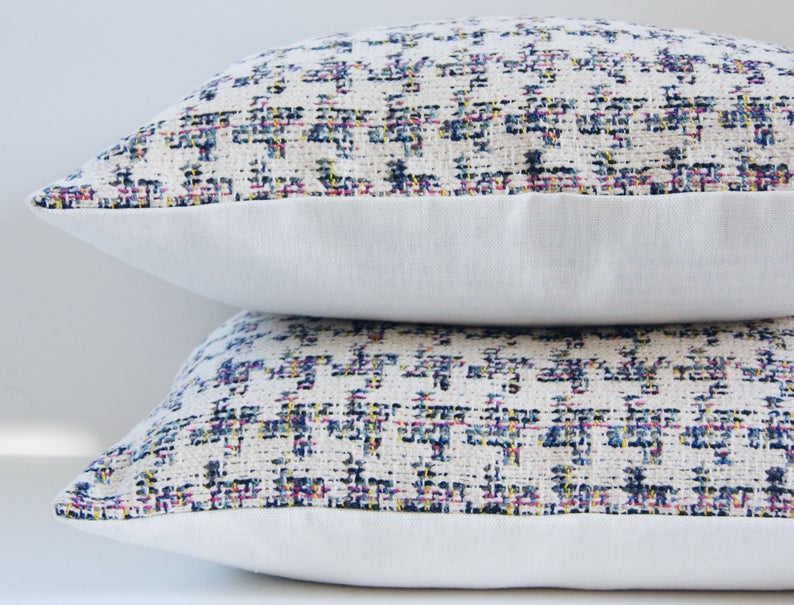 This is a fun houndstooth chenille we added to the mix that can be used year round and would be so fun on an upholstered chair.