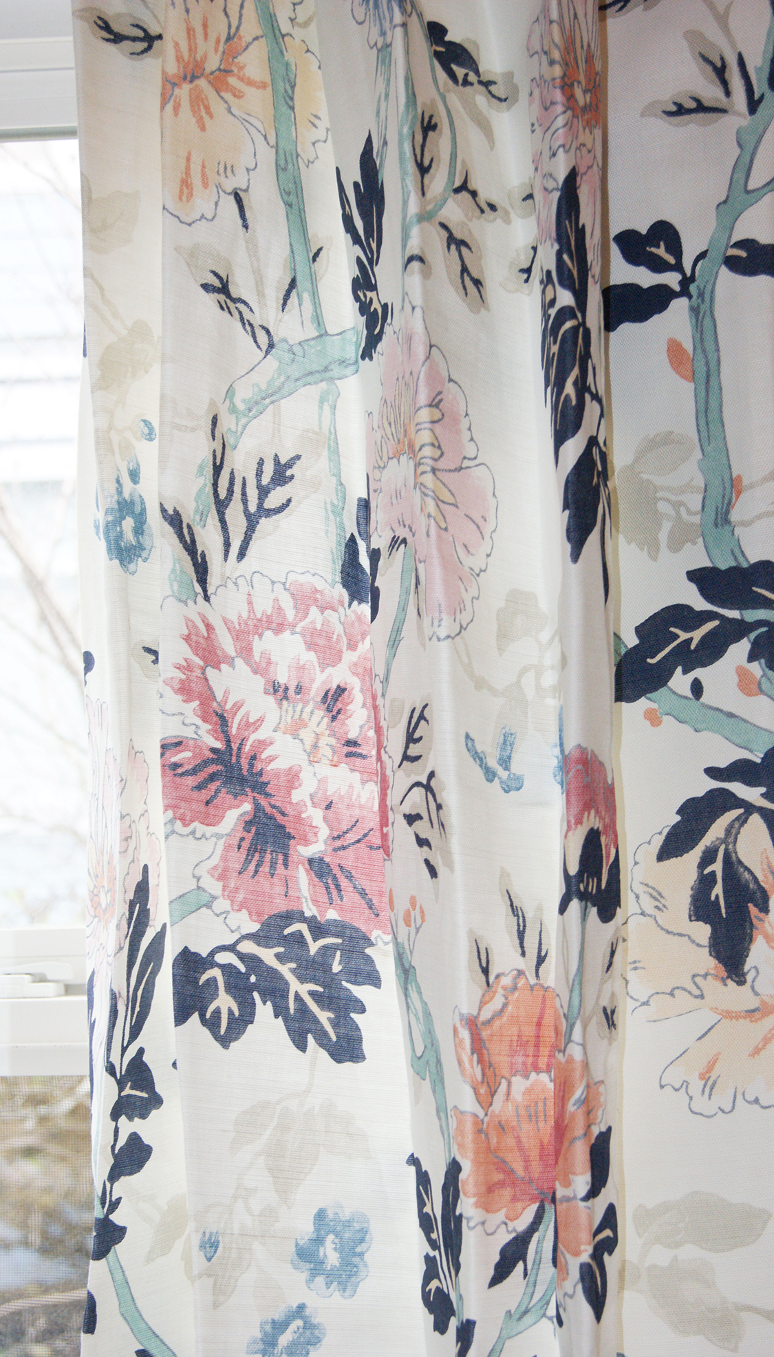 I wanted you to see the full scale and nuances of this floral. If you are interested in curtains in this pattern, let me know. I am unveiling my curtain program soon.