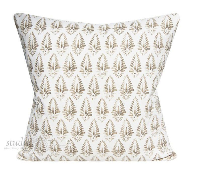 A lovely soft print called SPRIG on cotton/linen reminds me of a Fortuny print. Available in Blush, Graphite, Chambray, Jade and Indigo (not shown). This is a wonderful fabric for curtains, too.