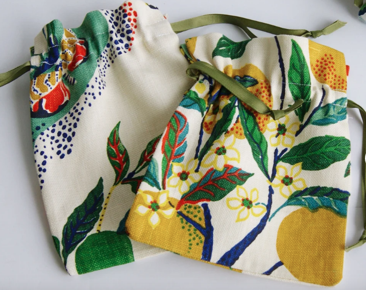 I can never bear to waste any of the scraps from this fabric so we make all kinds of accent and lumbar pillows as well as gifts bags.