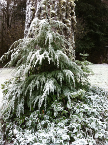 I ran across a tree at Silver Falls that was flocked by Mother Nature herself: