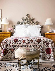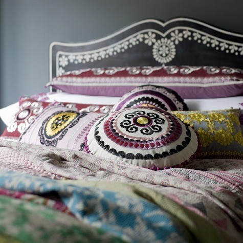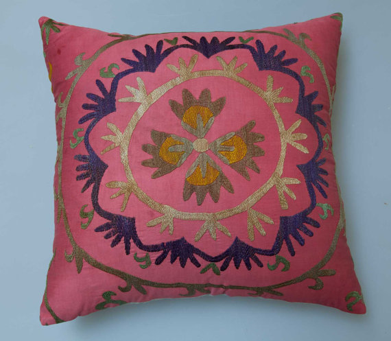 I have been doing a little research on Suzani textiles and have enjoyed the many modern applications out there of a traditional tribal textile technique made in Tajikistan, Uzbekistan, Kazakhstan and other Central Asian countries.