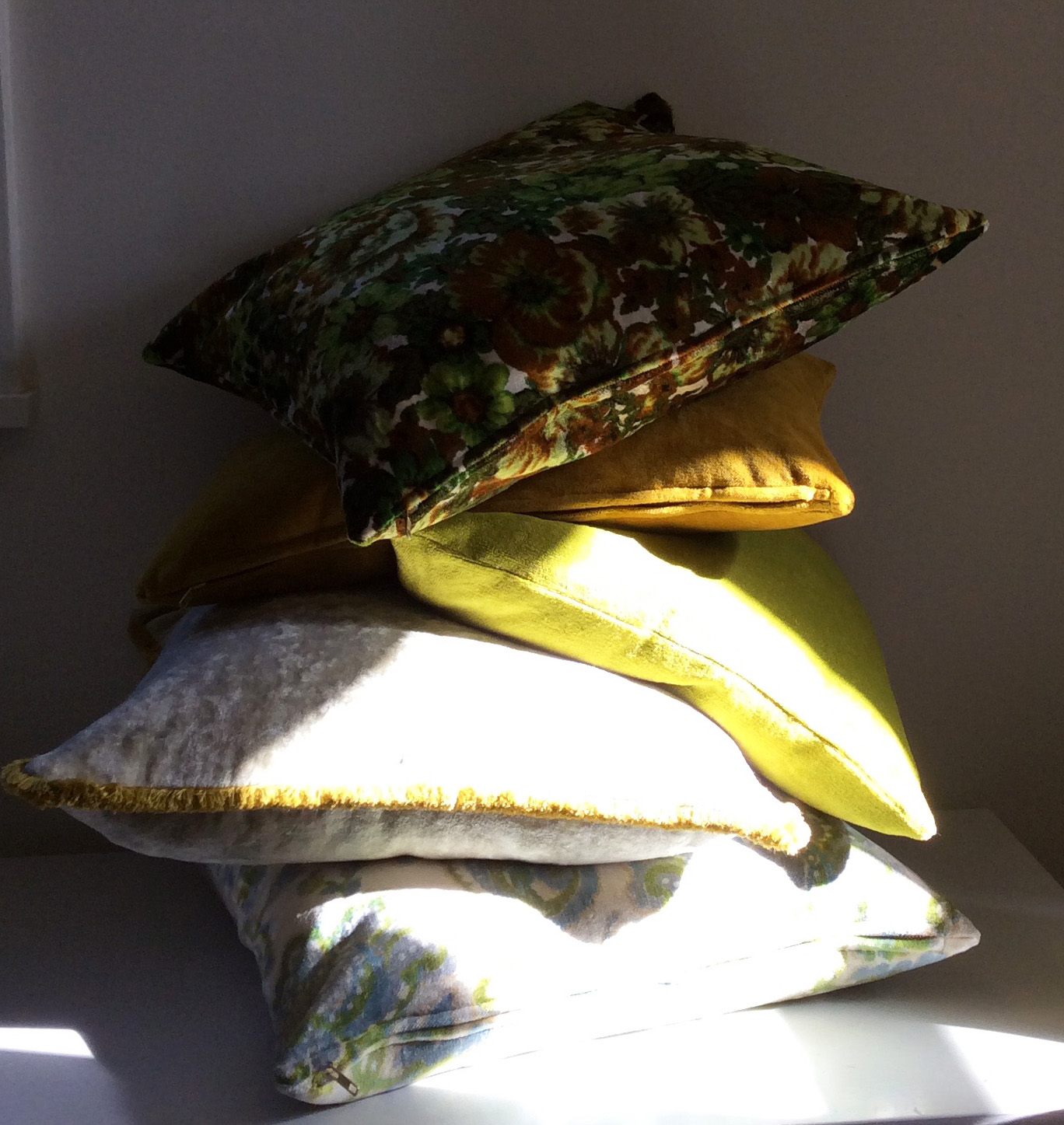 For now I’m offering ready made 20 and 22 inch squares and a couple of lumbar sizes. Of course I am always open to custom sizes as long as supplies last.