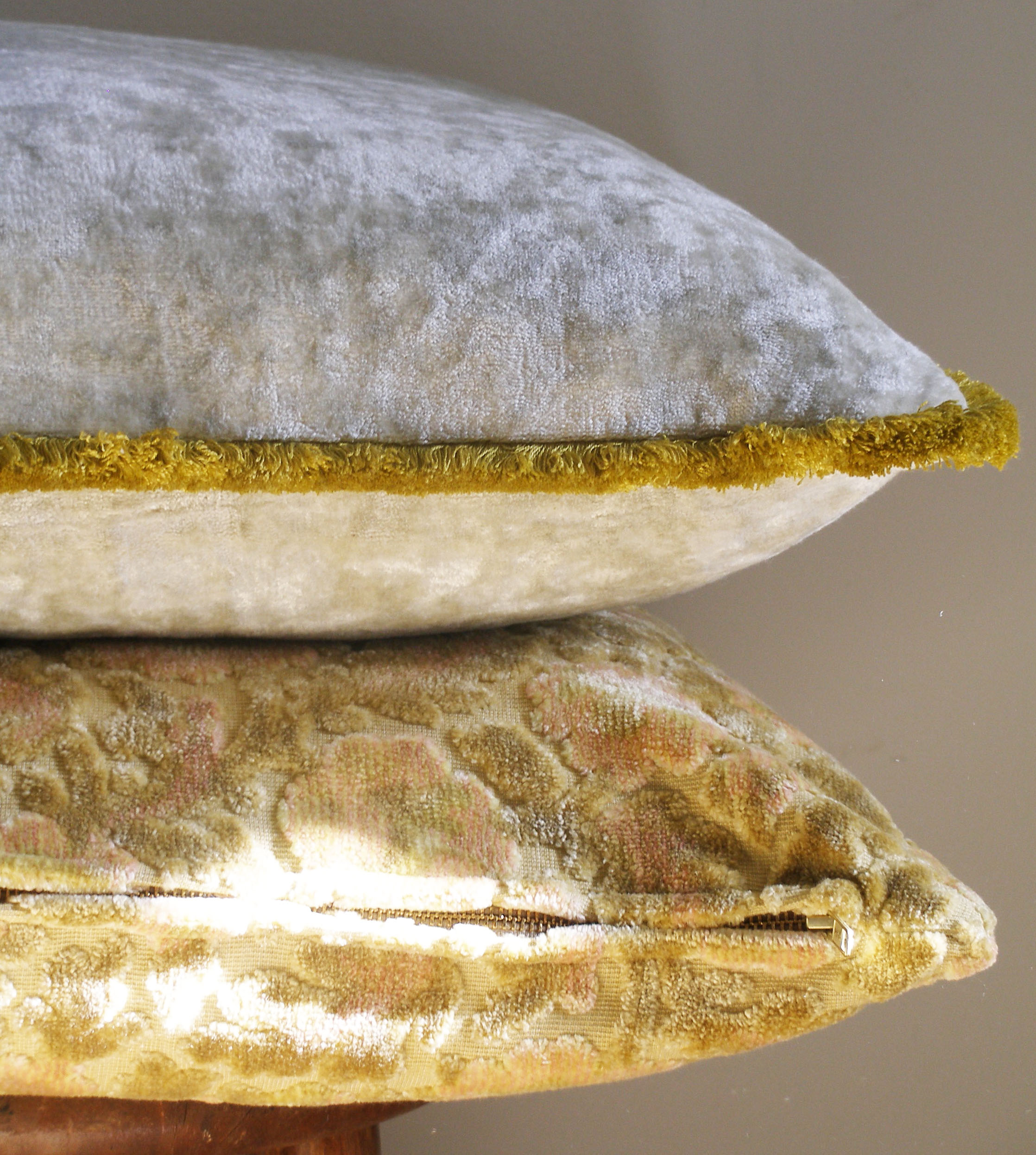 I have chosen to combine natural cottons and linens with these heavy weight textiles in an effort to freshen up the storied collection. I also decided to use heavy duty gold zippers which work nicely with these fabrics and offer a touch of glamour.