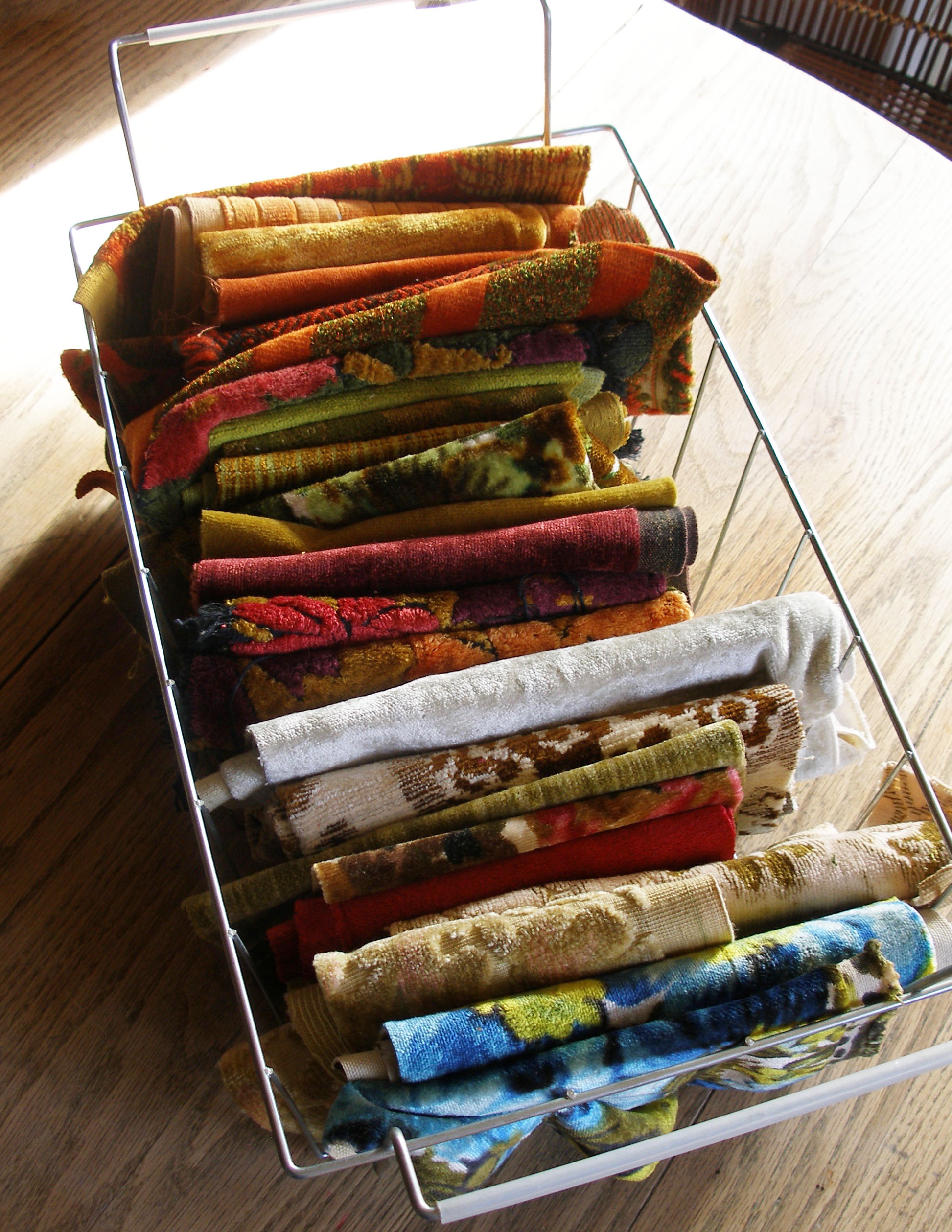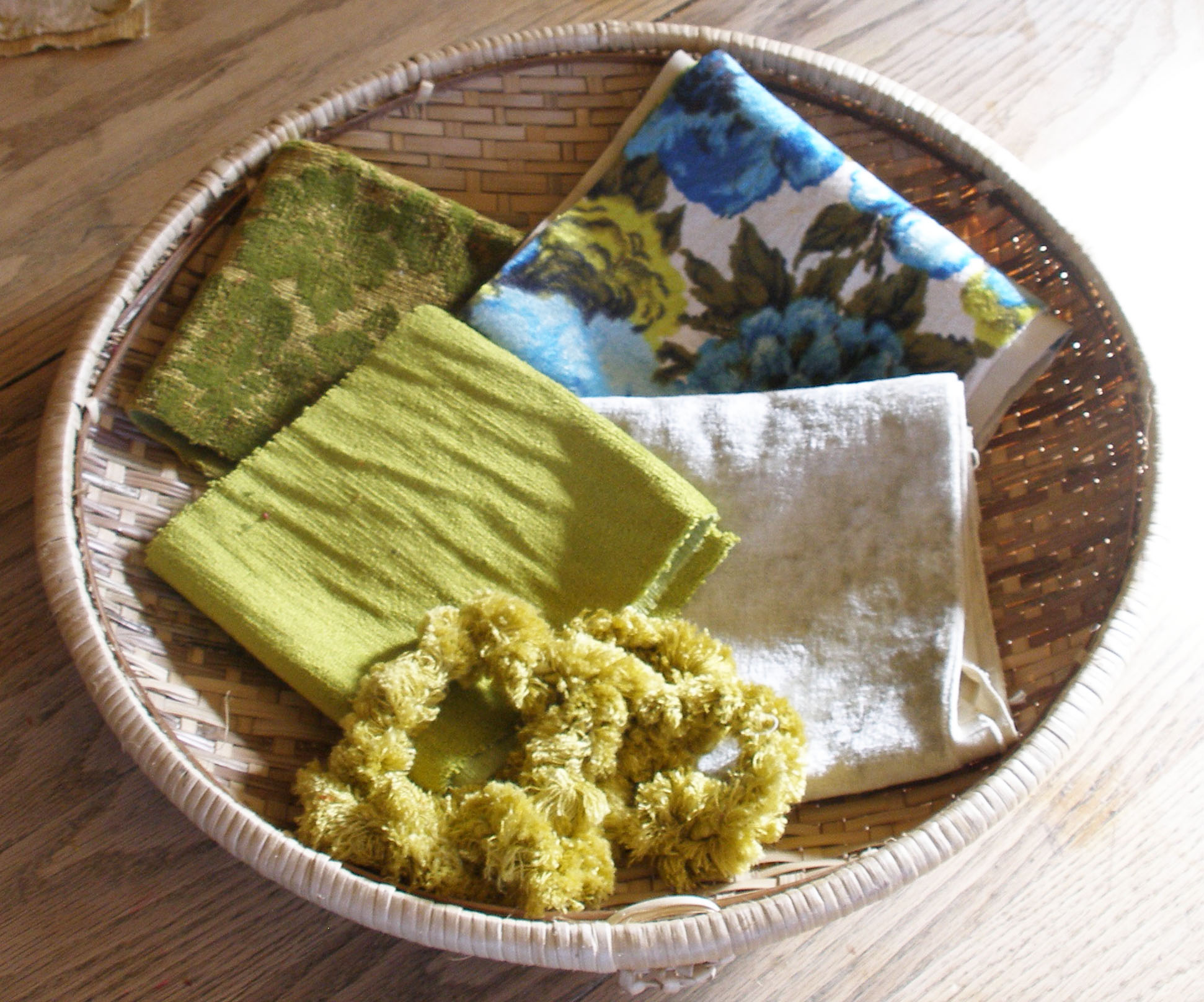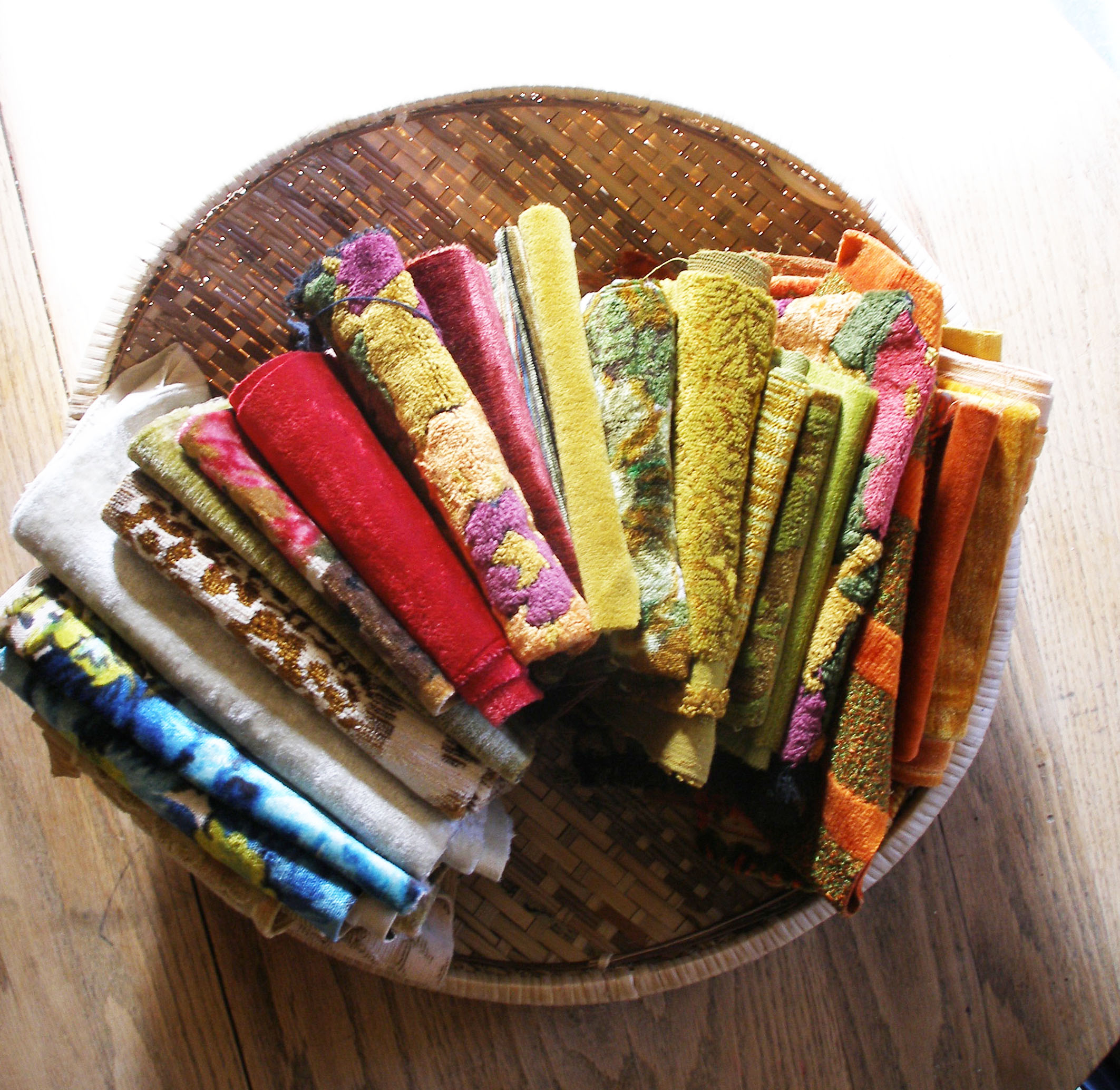 As a rule, I only purchase natural fiber textiles from the past so I was able to rule out a good portion of them. Natural fibers endure the test of time much better than man-made polyester type textiles which tend to become brittle and less durable overtime.