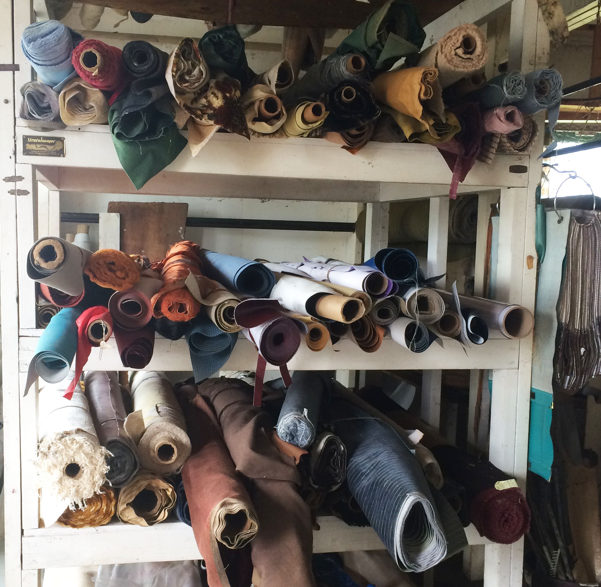 The textiles were largely Mid century and included heavy duty, upholstery grade velvets and complex wovens. There were some amazing bolts of Naugahyde used for marine upholstery which I opted to leave for someone else.