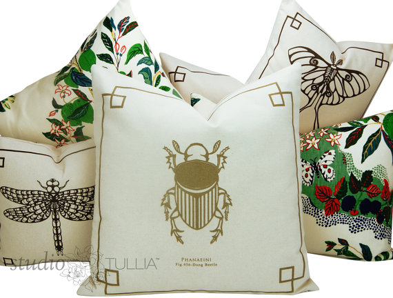 Here are a few of his pillows shown with THE BUG CHICKS COLLECTION. If you want to learn more about that wonderful line, click on one of the images below.
