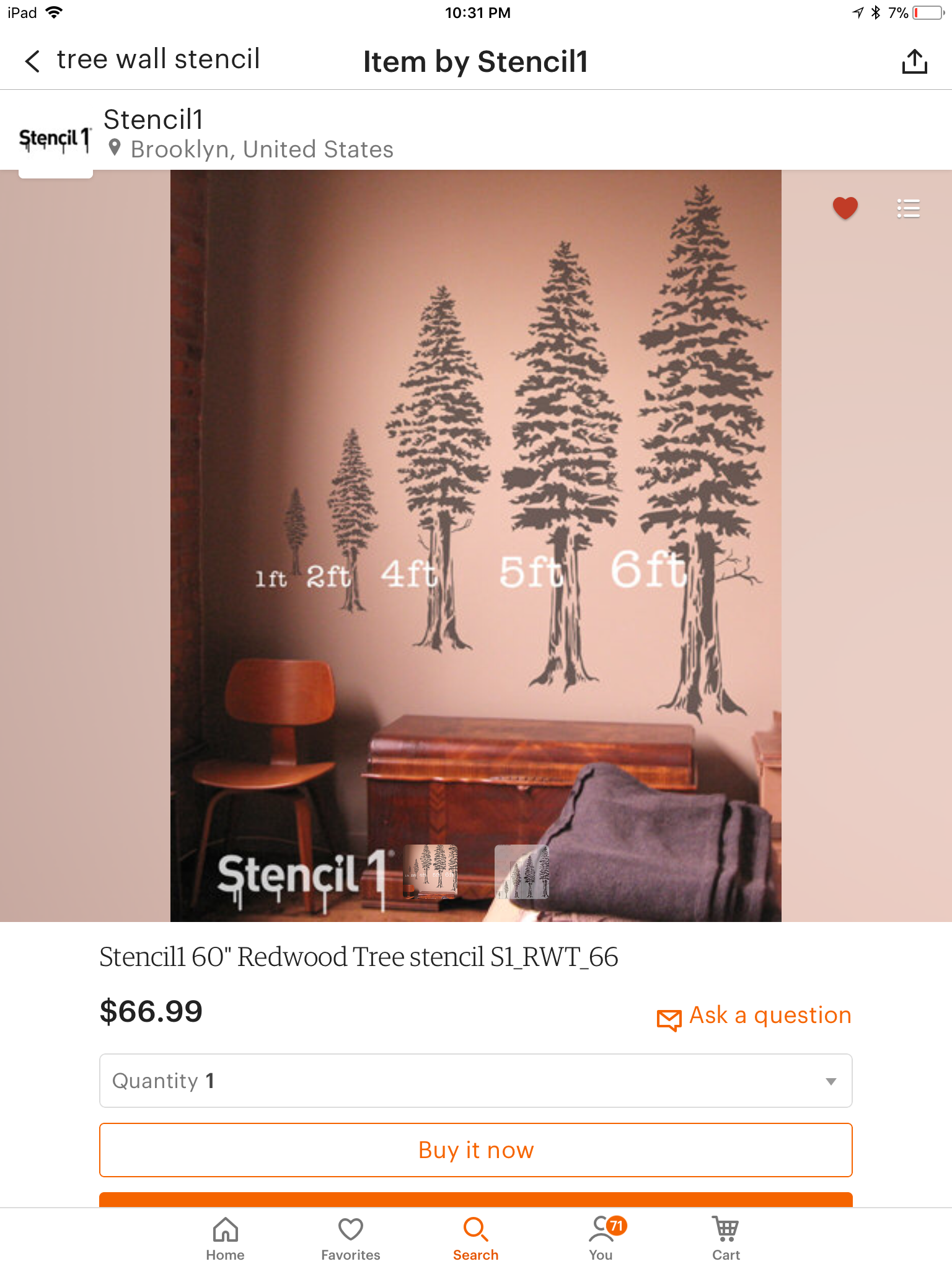 I came across this Woodland Hush Pattern on ETSY last night and decided to go for it. I feel it is finally moving me in the right direction. It will be used on one wall behind the dresser as an ACCENT WALL. As much as I love a palm motif, the more I thought about it, it wasn’t a great fit for the Northwest. And I really had a number of other factors that made it difficult to achieve – costs, time frame, etc. The fact that it has a deer family featured that is a metaphor for ours: parents with twins, was nice, too. I found it while searching for an evergreen stencil and decided to use it for the accent wall behind the dresser.